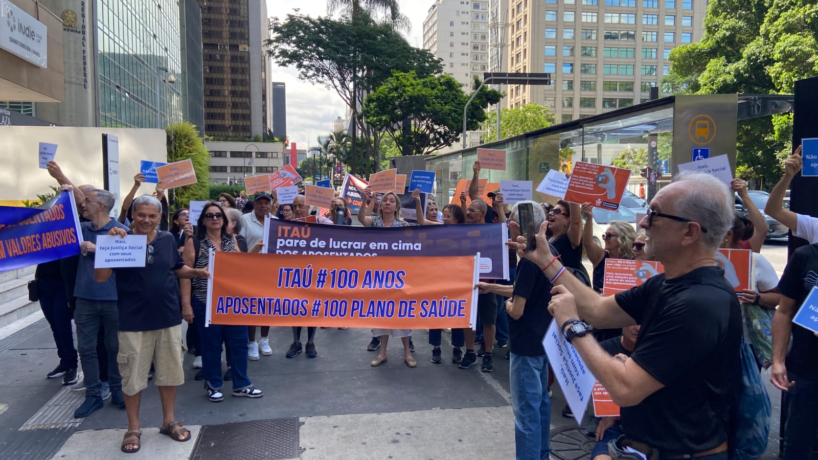 Aposentados do Banco Itaú protestam contra fim de subsídio em planos de saúde
